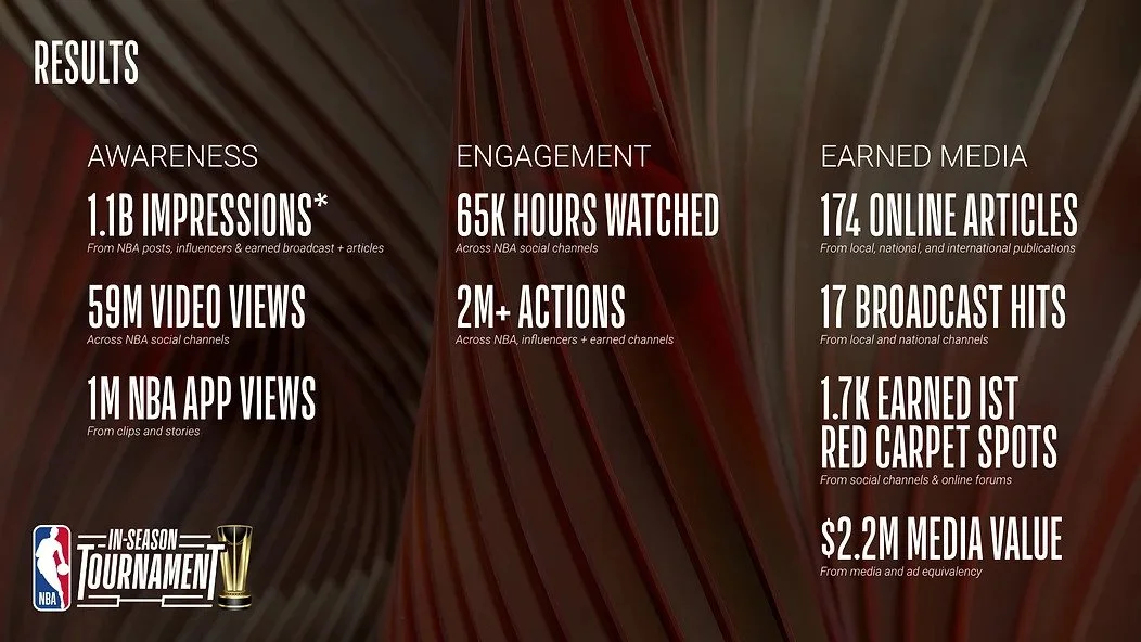 To combat their mid-season viewership slump, the NBA created the first-ever In-Season Tournament, complete with playoffs, championship, trophy, the works. The only problem was: how could we reach the casual NBA fans the tournament was designed to excite, who are of course, the exact people tuning out bball news? By showing up in their streams and feeds in ways they were paying attention to — style and culture. And by giving the Tournament the one thing it was missing — a red carpet.
